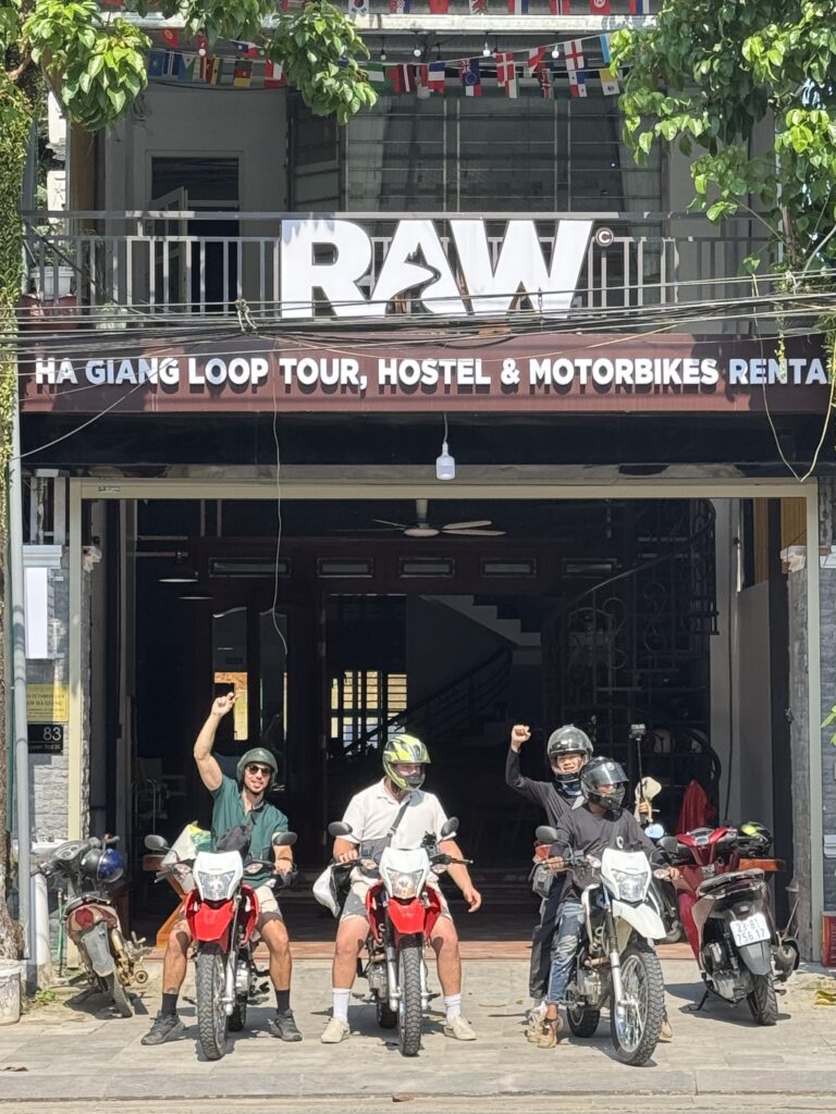 At RAW, your motorbike rental comes with everything you need for the Ha Giang Loop. We offer free luggage storage for all customers and a free hot shower after the trip.